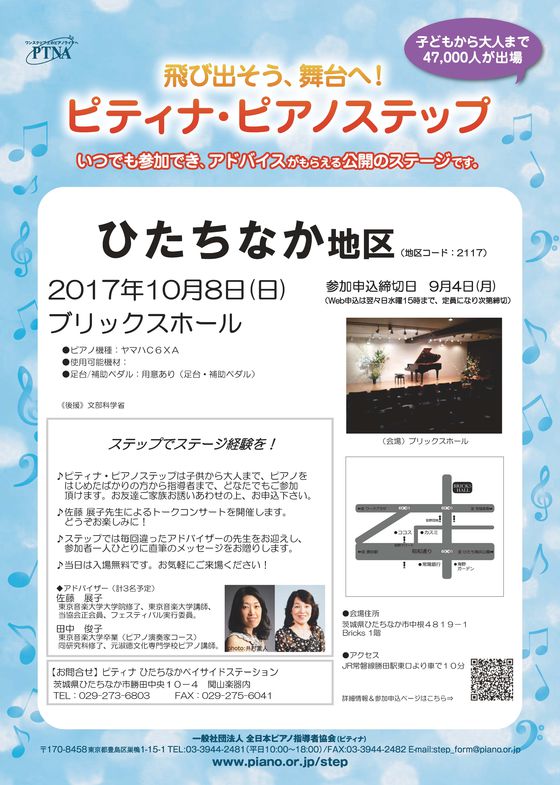 10月8日(日)BRICKS HALLにてピティナピアノステップひたちなか地区を開催いたします。