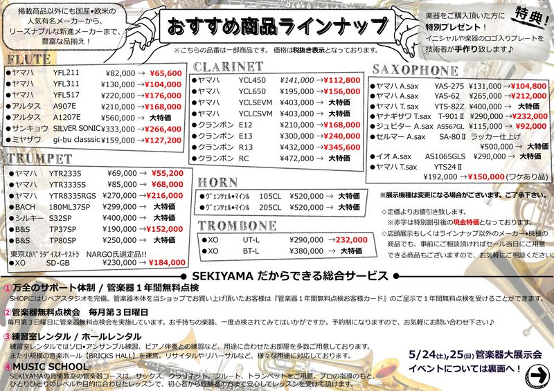 5/24(土)と5/25(日)には、管楽器の大展示会!