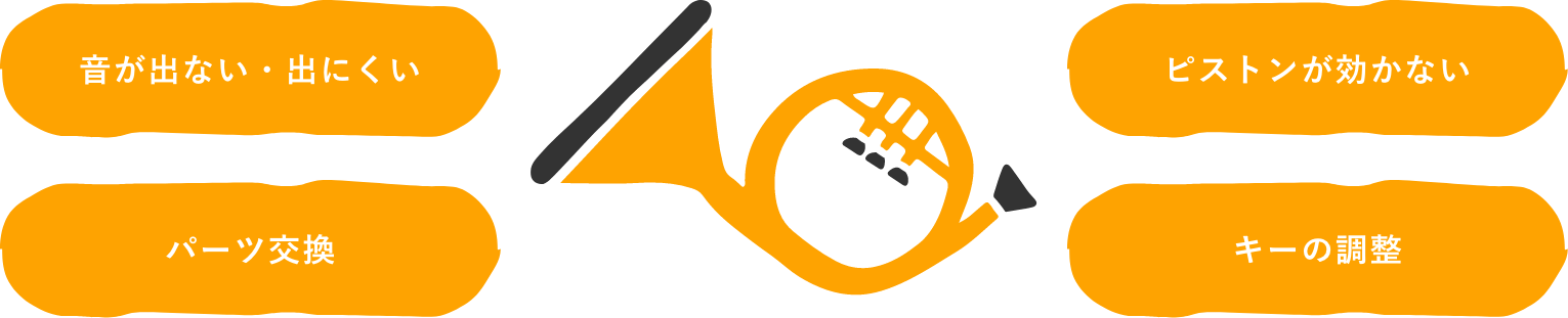 ※修理内容によっては、提携している工房での修理になる場合がございます。(管体凹出し、歪み修正、薬品洗浄、メッキかけ直し 他)